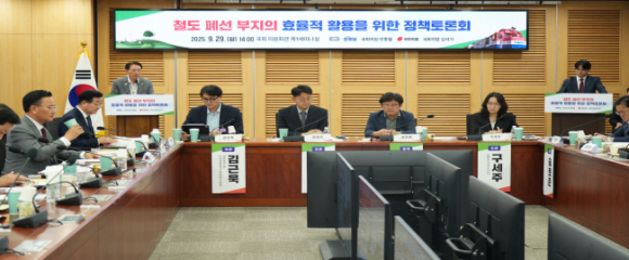‘철도 폐선 부지의 효율적 활용을 위한 정책토론회’ 가 9월 29일(월) 오후 2시, 국회 의원회관 제1세미나실에서 성황리에 개최됐다. 이번 토론회는 국민의힘 김석기 국회의원(경주시)과 더불어민주당 민홍철 국회의원(김해시갑)이 공동 주최했으며, 전국 각지에 방치된 폐철도 부지 활용 방안을 논의하기 위해 마련됐다. 토론회에는 여야 국회의원과 정부 관계자, 국가철도공단, 학계 및 지자체 전문가 등이 대거 참석해 높은 관심을 보였다. 개회식에서는 김석기·민홍철 의원의 환영사가 이어졌으며, 폐철도 활용의 필요성과 정책 개선 의지가 강조됐다. 발제를 맡은 성찬용 국립한밭대학교 도시공학과 교수는 현행 ‘철도 유휴부지 활용 지침’ 의 한계와 제도적 미비점을 지적하고, 법률 제정을 통한 개선 필요성을 제시했다. 이어 경주시, 경북연구원, 국가철도공단, 국회 입법조사처 관계자들이 토론자로 참여해 지역별 사례와 정책적 대안을 심도 있게 논의했다.