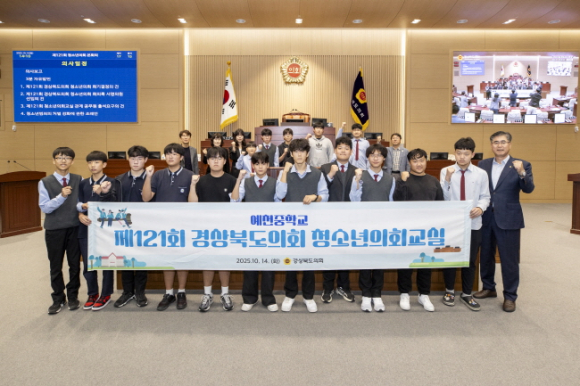 경상북도의회는 10월 14일(화) 본회의장에서 예천중학교 학생 17명이 참 여한 가운데 「제121회 경상북도의회 청소년의회교실」을 개최했다.