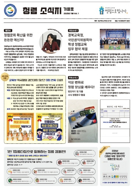 경북교육청(교육감 임종식)은 교직원의 청렴 인식 제고와 청렴 문화 확산을 위해 ‘2025년 청렴 소식지 가을호’를 발간했다고 24일 밝혔다.