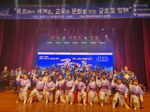 경상북도경주교육지원청(교육장 황영애)은 2025년 11월 30일(일) 오후 5시, 목포문화예술회관에서 개최되는 ‘목포청소년국악오케스트라 발표회 및 K-국악도시 목포 비전 선포식’에 경주 의곡초등학교 사물놀이단 ‘쇼미더장구’를 특별공연팀으로 내세워 함께 참여했다.