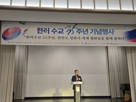 울진군산림조합(조합장 강성철)은 지난달 20일 오후 3시부터 서울 성북구 삼청각에서 개최된 한국과 러시아 수교 35주년 기념 문화행사에 울진금강송주를 만찬주로 후원하여 적극 홍보했다. 주한 러시아연방대사관과 (사)한러친선협회가 공동 주최한 이번 행사에는 게오르기 지노비예프 주한 러시아대사를 비롯해 손경식 한러친선협회 회장(CJ그룹 회장), 현정은 현대그룹 회장, 주호영 국회부의장, 송영길 소나무당 대표 등 양국 주요 인사 약200명이 참석했다. 이번 행사에 금강송주가 만찬주로 선정되기까지는 울진 출신이자 (사)한러친선협회 문종금 이사장의 고향을 사랑하는 마음과 적극적인 협조 덕분에 가능했다. 강성철 조합장은 만찬 자리에서 “금강송주는 나무 중의 으뜸이자 우리나라 국민이 가장 좋아하는 울진 금강소나무의 솔잎과 그 숲에서 자란 자연산 송이버섯을 사용하여 전통 방식으로 정성껏 빚은 지구촌 최고의 전통주”라고 소개를 했다.