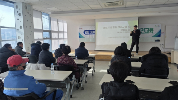 |  | | | ↑↑ 포항시는 26일 철길숲 유지관리원 신규 채용에 따라 신규 근무자 12명을 대상으로 직무 이해와 안전사고 예방을 위한 ‘직무 및 안전보건교육’을 실시했다. | | ⓒ GBN 경북방송 | | 포항시는 26일 철길숲 유지관리원 신규 채용에 따라 신규 근무자 12명을 대상으로 직무 이해와 안전사고 예방을 위한 ‘직무 및 안전보건교육’을 실시했다.