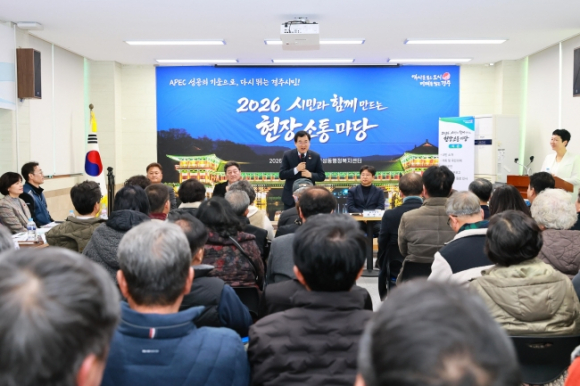경주시는 27일 불국동과 월성동에서 ‘2026년 시민과 함께 만드는 현장소통마당’을 열고 주민들과 지역 현안을 공유하며 건의사항을 청취했다. 이날 오전 10시에는 불국동 행정복지센터 대회의실에서, 오후 3시에는 월성동 행정복지센터 대회의실에서 월성동 현장소통마당을 개최했다. 행사에는 주낙영 시장과 이동협 의장을 비롯해 정희택 시의원, 박승직 도의원 및 주민 100여 명이 참석해 축하공연과 읍면동 주요 현안 보고에 이어 주민 건의사항을 중심으로 한 토론을 진행했다. 먼저 불국동에서는 세계문화유산 불국사와 주요 관광지 인접 지역이라는 특성을 반영해 관광객 증가에 따른 교통 혼잡과 주차 문제, 관광 성수기 차량 정체 해소 방안 등이 주요 안건으로 제시됐다. 또 주거지역과 관광 동선이 혼재된 구간의 보행 안전 확보, 생활권 중심의 교통 관리 강화 필요성도 주민들로부터 집중적으로 제기됐다.