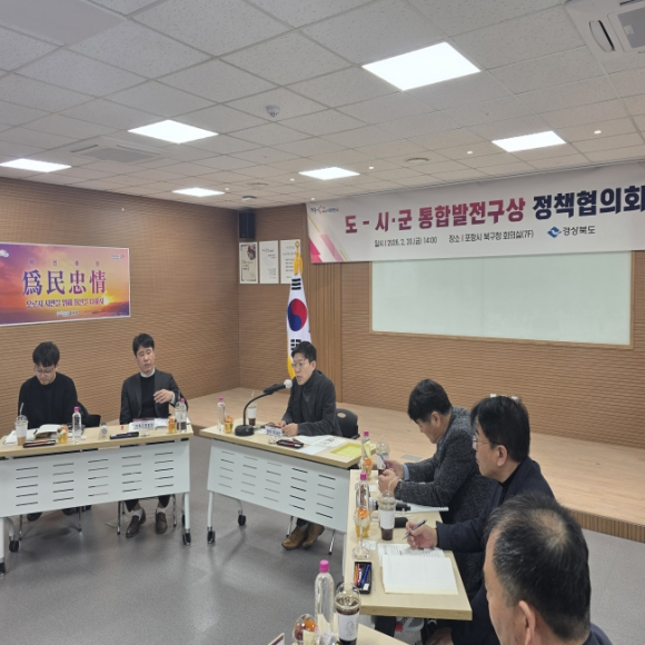경상북도는 2월 20일, 포항시청에서 동부권(포항․경주․영덕․울진․울릉) 5개 시군 기획부서장, 담당자 등 70여 명과 함께 지역 미래발전 전략 마련을 위한「도-시군 통합발전구상 정책협의회」를 개최했다.