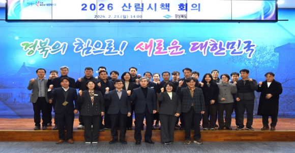 경상북도는 2026. 2. 23. 도청 화백당에서 22개 시‧군 산림부서장 등 100여 명이 참석한 가운데 ‘2026 산림 시책 회의’를 개최했다.