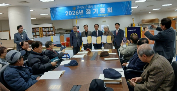경주 문인협회는 지난달 28일 오후 4시 경주 예총회관 문인협회 사무실에서 2026년 정기총회를 개최하고 조광식 회장의 뒤를 이을 새로운 회장을 세우고 집행부를 구성했다.