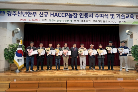 시는 ‘경주천년한우’를 사육하는 지역 한우농가 진우농장(강동면 이종왕) 등 10개 농가가 식품안전관리인증(HACCP)을 새롭게 획득했다고 8일 밝혔다.