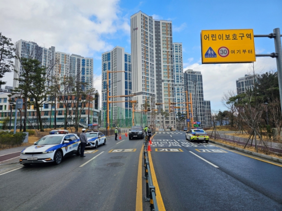 경주경찰서(서장 양순봉)은 13일 오후 2시부터 약 2시간 동안 경주시 건천읍에 위치한 신설 화천초등학교 어린이보호구역 일대에서 음주운전 등 교통법규 위반행위에 대한 집중 단속을 실시했다. 이번 단속은 어린이보호구역 내 교통사고 예방과 안전한 통학로 환경 조성을 위해 실시됐다. 경찰은 음주운전을 비롯해 약물운전·어린이보호구역 안전운전의무 위반·신호위반 등 12대 중과실 행위에 대해서도 집중적으로 단속했다. 특히 초등학생 하교시간대인 오후 시간대에 맞춰 단속을 실시해 어린이 보호구역 내 교통사고 예방과 운전자들의 교통법규 준수 분위기 조성에 중점을 뒀다고 경찰은 설명했다.