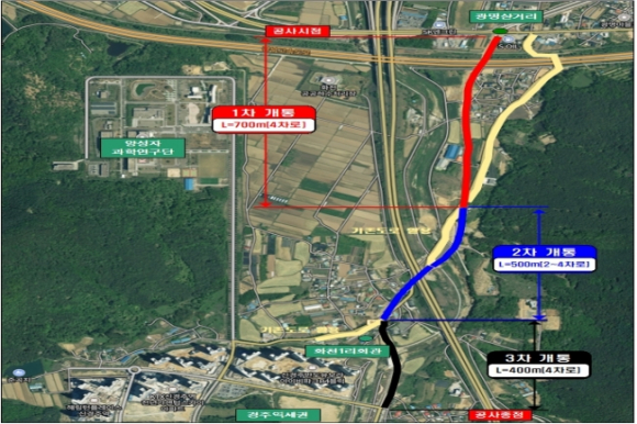 양성자과학연구단 등 인근 산업·연구시설 접근성이 개선되고, 역세권과 생활권을 잇는 핵심 간선도로로 자리 잡을 전망이다. 시는 단계별 개통으로 공사 장기화에 따른 주민 불편을 줄이고, 상습 정체 해소와 교통사고 위험 감소에도 효과가 있을 것으로 기대하고 있다. 최혁준 경주시장 권한대행은 “광명~화천 도로는 신경주역세권과 도심을 잇는 핵심 기반시설”이라며 “단계별 개통으로 시민 불편을 줄이고 교통환경 개선 효과를 조기에 체감할 수 있도록 하겠다”고 말했다. |