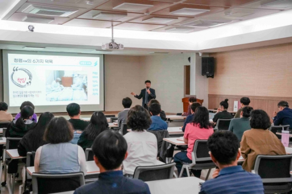 화랑교육원(원장 박재진)은 지난 4월 21일(화), 원내 화랑관에서 투명하고 공정한 공직 문화 조성을 위해 전 직원들을 대상으로‘2026년도 청렴 교육’을 실시하였다. 특히, 이번 교육은 ‘국가청렴권익교육원 전문 강사 자격’을 보유한 박재진 원장이 외부 강사를 초빙하는 대신 직접 특강을 진행해 의미를 더했다. ‘이해충돌방지법’ 및 ‘청탁금지법’준수를 통한 부패 사전 차단 방안을 다루는 한편, ‘직장 내 괴롭힘 예방’을 강조하며 갑질 없는 수평적이고 건강한 조직 문화 조성의 중요성을 역설했다. 교육에 참석한 한 직원은 ‘직장 내 괴롭힘 예방 등 심도있는 부분까지 세심하게 짚어주셔서, 조직 내 상호 존중 문화가 더욱 확산될 것이라는 기대감이 생겼다“고 소감을 전했다.