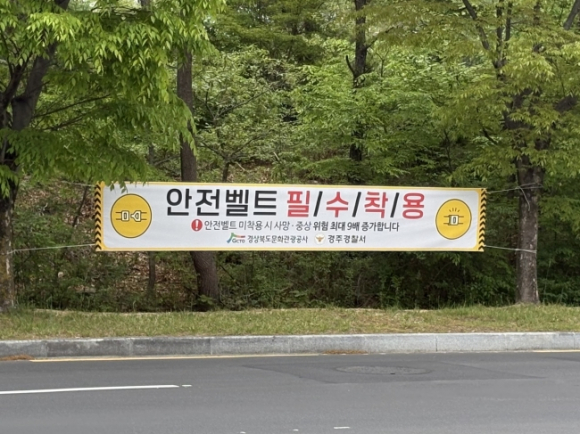 경주경찰서(서장 양순봉)는 최근 증가하는 교통사망사고에 선제적으로 대응하기 위해 ‘안전벨트 필수착용’ 홍보 현수막을 주요 거점에 집중 부착하며 시민 안전의식 제고에 나섰다.