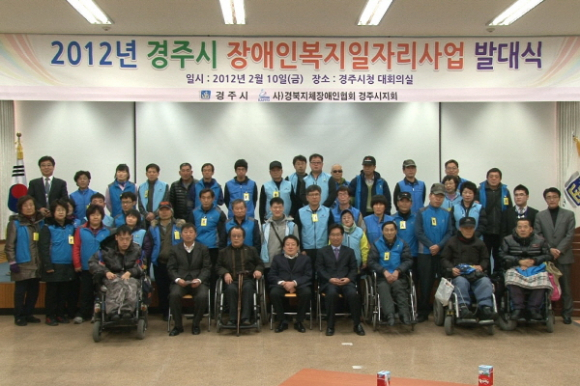 ‘2012년 장애인복지일자리 발대식 및 직무교육’이 경주시 주최로 2월 10일 10시 30분부터 12시까지 경주시청 대회의실에서 개최되었다.