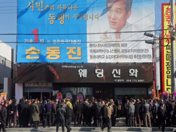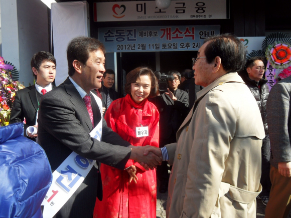제19대 총선 경주시 예비후보자 손동진 전 동국대 총장은 지난 11일 오후 2시 황오동 팔우정 로타리에 위치한 선거 사무소에서 시민, 관계자 등 약 2,500여명이 참석한 가운데 개소식을 열었다.