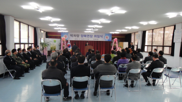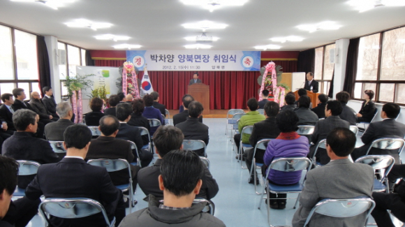 지난 15일. (재)문화엑스포 홍보마케팅 팀장이던 박차양 과장이 공석 중이던 양북 면장으로 자리를 옮겨 취임식을 가졌다.