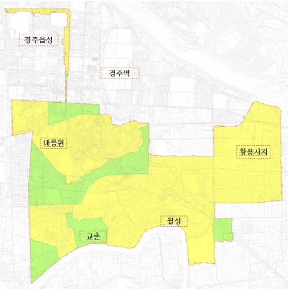|  | | | ↑↑ 경주 고도지구 지정도면-노란색지역(특별보존지구)초록색지역(역사문화환경지구) | | ⓒ GBN 경북방송 | |