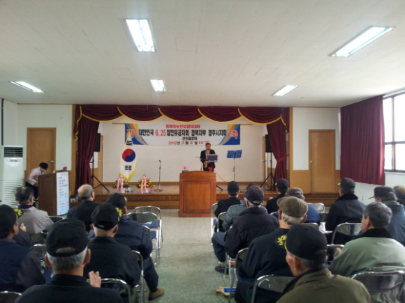6.25 참전 유공자회 건천분회에서는 지난 8일(목) 10시 30분에 건천읍민회관에서 6.25전쟁의 역사적 의의를 재조명하고, 대한민국 자유수호를 위해 산화한 호국영령들의 희생정신을 기리며 전후세대에게 국가의 소중함과 안보의식을 고취시키고자 6.25 참전 유공자회 건천분회 총회의 및 안보결의대회를 가졌다.