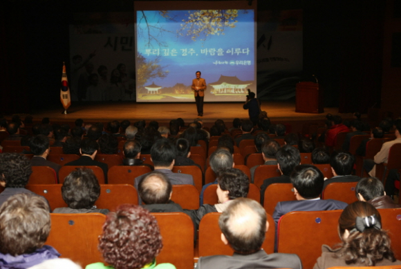최양식 경주시장을 비롯한 공무원과 시민 등 500여명이 참석한 이날 특강에이순우 은행장은 ‘뿌리 깊은 경주 바람을 이루다’란 주제로 특강을 했다.
