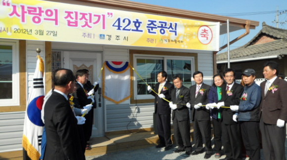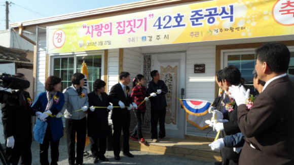 경주시는 올해 다문화가정 지원의 일환으로 시행중인 사랑의 집짓기사업 대상자로 구정동 김중섭 가정을 선정하여 3월 27일 김중섭 씨 댁에서 지역주민, 단체 등 60여명이 참석한 가운데 사랑의 집짓기 제42호 준공식을 가졌다.
