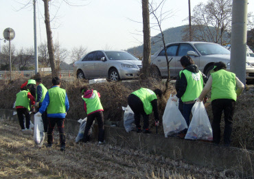 새봄을 맞이하여 3월 26일 오후4시 우리동 자연보존협의회(회장 정옥자) 회원과 공무원 등 40여명이 참석하여 『국토 대청결운동』을 실시했다.