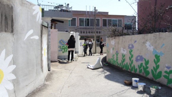 벽화작업은 동국대 이점원 교수와 중견작가 10여명이 참여하여 3월 26일부터 시작하여 일주일간 계속될 예정이며 해국벽화 거리에는 군데군데 작은 쉼터가 있다. 해국을 가만히 보고 있노라면 누군가를 간절히 기다리는 듯 하기도 하고 수줍은 처녀의 모습 같기도 하다.