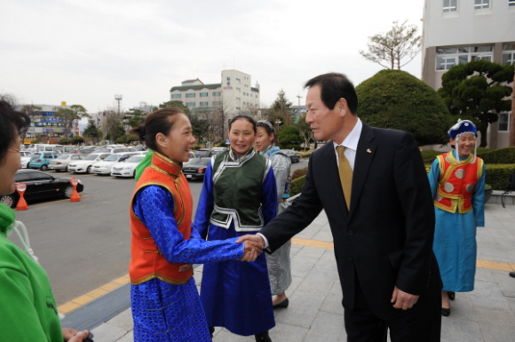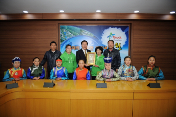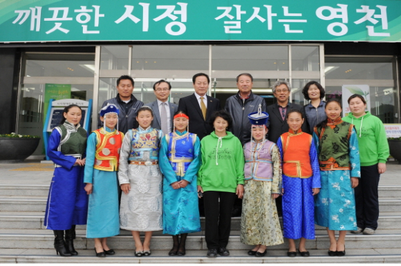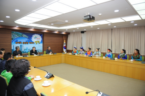 중국 몽골 여자마라톤팀 전통복장으로 영천 방문 우의 다져