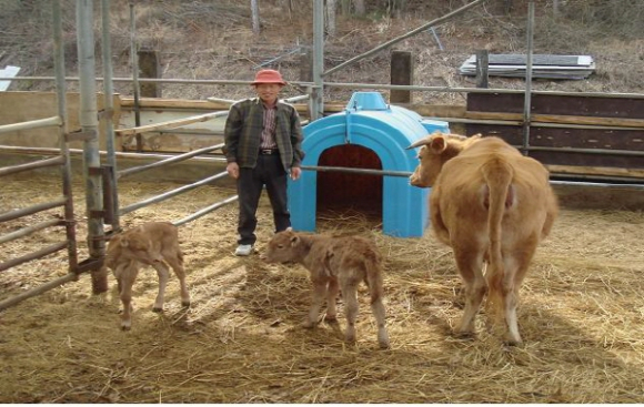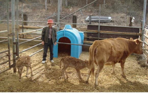 영주시 장수면 두전리 353 - 3번지 우성광(60세) 농가에서 사육중인 번식우가 지난 3월 25일 오후 8시경 우량한 암소를 출산한 후 4월 1일 오후 5시30분경 한 마리가 더 태어나서 겹경사로 앞으로 영주시에 좋은 일이 많이 일어날 징조라고 좋아하고 있다.