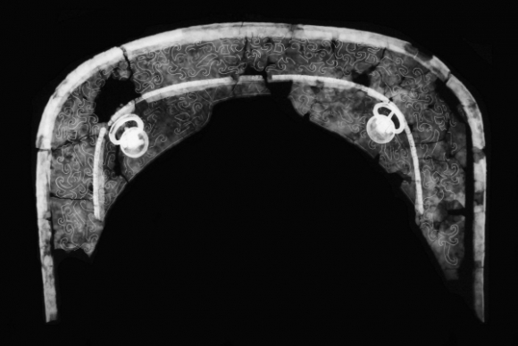 극장 문이 열리자 사람들이 쏟아져나오고 피부에서 붉은빛이 번져