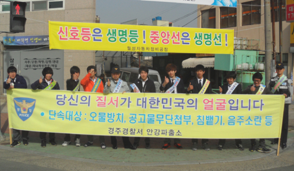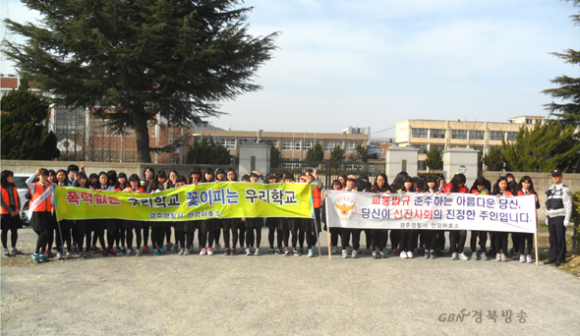 경주경찰서 안강파출소(소장 이경훈)는 5일 오전 9시와 오후 4시에 안강전자고등학교와 안강여자고등학교 재학생과 합동으로 학교폭력예방, 기초·교통질서 확립 캠페인을 개최했다. 파출소 직원과 2개 학급 학생들이 참여한 캠페인은 안강읍 일원에서 가두캠페인을 벌이고 안강사거리, 안강제일초등학교 앞에서 2시간동안 홍보활동을 펼쳤다.