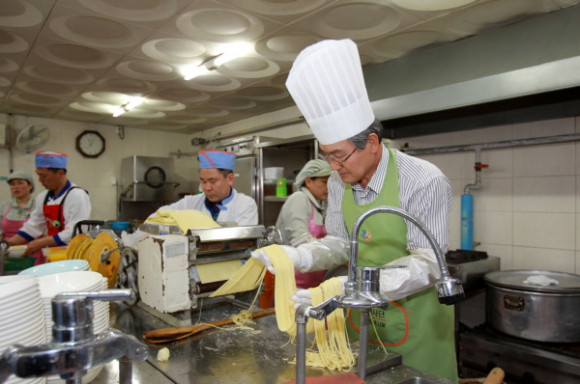 박승호 포항시장이 블랙데이를 앞두고 직접 자장면 면발을 뽑고 자장소스를 담으며 중화요리사로 변신했다.