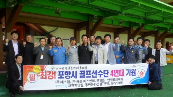 포항시 해양항만팀, 동빈운항건설TF팀, 테라노바팀과 (주)에스엠, (주)해동에스엔씨, 연일읍·연일읍체육회로 구성된 제50회 경북도민체전 포항시 골프선수단 서포터즈는 16일 이동골프클럽에서 구미 선산C.C로 연습 라운딩을 떠나는 포항시 골프선수단을 방문해 격려금을 전달하고 필승의지를 다졌다. |