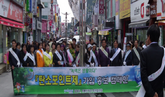이날 행사는 푸른포항21 지역위원, 녹색일꾼 그린리더, 공무원 등 100여명이 참가했다. 참여자들은 행사장에서 포항역 등 1.5km 구간에서 가두행진을 하며 시민들에게 탄소포인트제 홍보물을 배부했다.