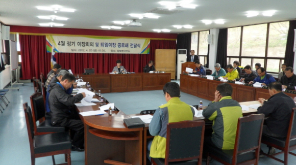양북면은 지난 4월20일, 이장 전원이 참석한 가운데 정기 이장회의를 열어 전년도 퇴임 이장 8명과 시정유공자들에게 공로패를 전달하고 올해 첫 당면업무 공지를 했다.