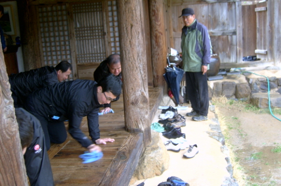향단마루를 직접 닦고 강풍으로 쌓여있는 주변쓰레기를 말끔히 수거