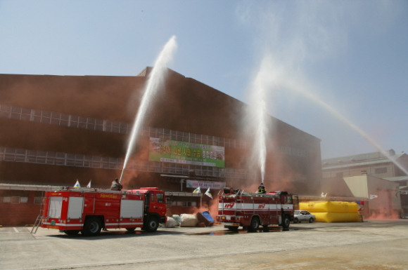 이번 훈련은 “지진에 따른 사태 수습 종합훈련”으로 근로자대피, 긴급구조, 화재진압, 유해물질제독, 피해복구 등 가상 시나리오에 의한 전개로 종합적인 재난사태 대응 시범훈련으로 실시되었다.