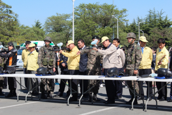 이날 훈련은 복합적인 상황을 대비해 민관군경의 공조체제를 확립하고 민방위대의 초동대응능력을 강화하는데 중점을 두었다. 특히 경찰, 소방, 군인, 민방위대원, 유관기관, 봉사단체 등 14개 기관 및 단체에서 200여명이 훈련에 참가했고, 최양식 경주시장, 이주석 경북도 행정부지사, 최학철 도의회의원, 박병훈 도의회의원, 이철우 시의원을 비롯한 유관기관 단체장, 민방위대원, 학생, 주민 등 300여명이 참관하여 진행되었으며 소방헬기, 구급차, 소방차, 인명구조장비 등 20여종의 장비도 함께 동원되었다.