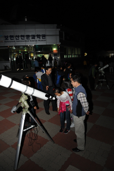 한편 보현산 정상에 위치한 보현산천문대 야간관측 공개행사에도 국내 최대 1.8m망원경으로 천체관측을 체험하기 위해 전국에서 온 참여자들로 성황을 이루었으며 천문대장의 천문강연과 천체사진 전시회로 참가자들에게 색다른 경험을 제공했다.