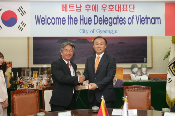 경주시와 후에시는 지난 2007년 9월 7일 자매결연 체결 한 후, 양 도시는 전통 예술공연단 상호 파견, 민간단체 등 활발한 교류를 하고 있다. 또한 금년 4월 후에시 축제에 경주시 동국대 국악팀을 파견해 문화관광도시인 경주의 이미지를 제고 했을 뿐만 아니라, 제13회 후에 세계역사도시연맹회의 참가해 양도시간의 우의를 한층 돈독히 했다.