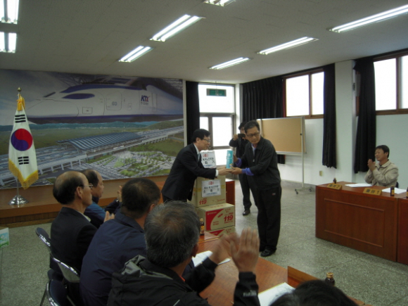 한기만 신경주새마을금고조합장 및 직원일동은 2012년 5월 10일 이장회의시 건천읍 독거노인 125세대에 생활화재 진압 및 화재 대비를 위한 소화기를 전달했다.