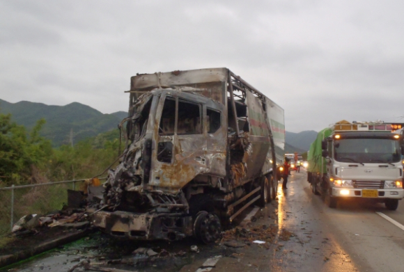 2012년 5월 11일 새벽3시45분경 경부고속도로 하행선 75.5Km지점 교통사고로 인한 14톤화물탑차에 화재가 발생했다.