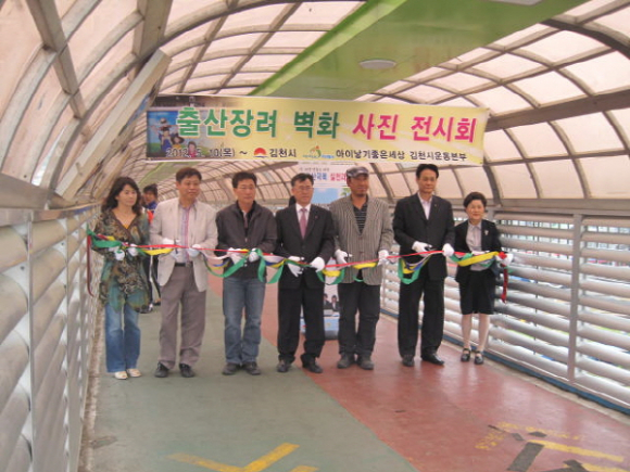 김천시는 저출산 문제를 시민들과 함께 극복하기 위해 시민들의 관심과 공감대 형성을 위한 출산장려 홍보에 김천시미술협회 회원들로부터 선정된 작품 60여점을 선정해 시내 곳곳에 벽화 거리를 조성했다. 벽화를 활용해 사진으로 만들어 시민들의 왕래가 많은 김천역 인근 평화육교에서 지난 10일 오후4시 사진전시회를 가져 시민들로부터 큰 관심과 호응을 받고 있다.
