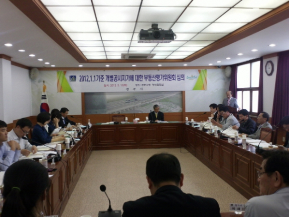 경주시는 15일 오후3시 시청 영상회의실에서 강두언 도시개발국장 주재로 부동산평가위원, 감정평가사, 관계공무원 등 50여명이 참석한 가운데 2012년 1월 1일 기준 개별공시지가의 적정성여부 심의를 위한 부동산평가위원회를 개최했다.