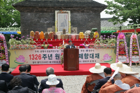 세계적인 사상가이며 우리 민족의 성인으로 추앙받고 있는 원효성사를 기리는 제1326주기 원효성사 제향대재가 5월 19일, 11시 분황사 경내에서 봉행됐다.