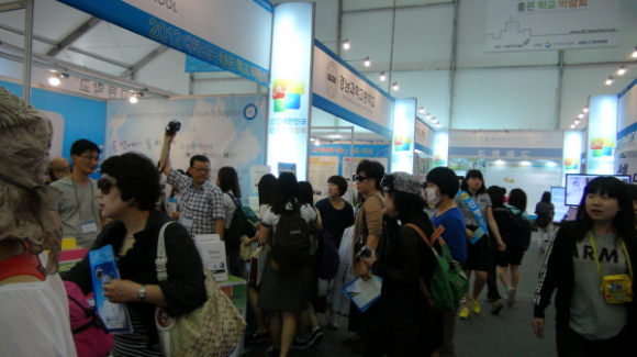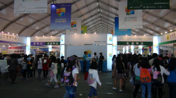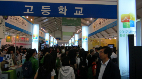좋은학교박람회 방문객들 전시장 공기나빠 눈살 찌푸려