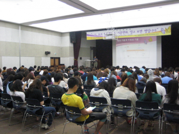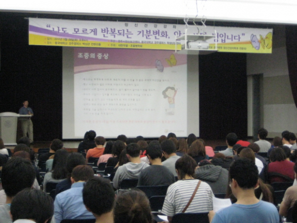 동국대학교 경주병원 정신건강의학과 전문의 곽경필 교수의 ‘나도 모르게 반복되는 기분변화, 알고 보면 병입니다’를 주제로 조울병 치료 및 예방방법에 대한 강의와 조울병을 쉽게 알 수 있는 동영상을 시청함으로써 대학생들이 조울병에 대해 이해를 돕고, 조울병 선별검진 실시로 자신의 현 상태를 파악하고 정신장애를 조기에 발견하는데 도움이 되었다.