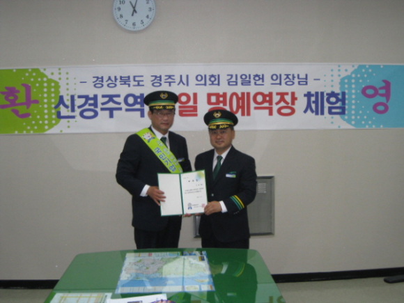 코레일 대구본부 신경주역은 4일 김일헌 경주시의회 의장을 일일 명예역장으로 위촉하여 철도서비스 일선의 업무를 체험하는 행사를 가졌다.