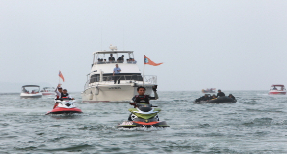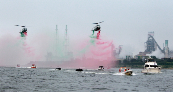 - 50년전 포항항 물동량 이동 경로 재현 해상퍼레이드 눈길 - 글로벌 포항호의 돛을 올리는 출항 세러모니 연출