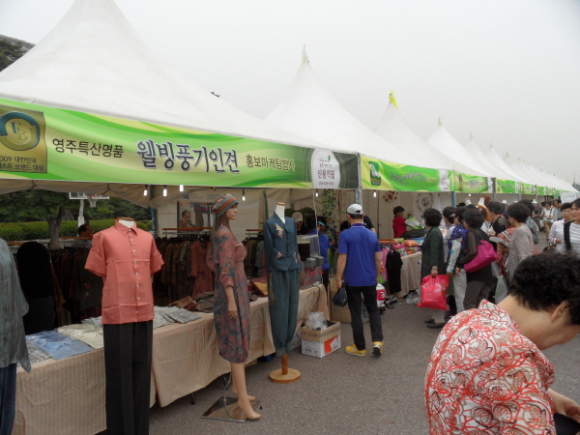 풍기인견은 천연 펄프(나무)에서 추출한 섬유질로 만든 순수 자연섬유로서, 가볍고 시원하며 몸에 붙지 않고 통풍이 잘되어 일명 “에어컨 섬유” 로 불린다. 이번 행사에 방문한 인원은 5만 명 정도이고 판매액은 12억 원으로 전년대비 10%가 증가 되었다.