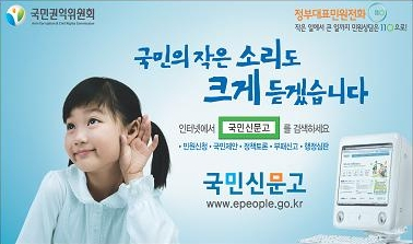 국민권익위원회는 고충민원의 처리와 불합리한 행정제도 개선, 청렴한 사회를 만들기 위한 부패방지 업무, 위법·부당한 행정처분으로 국민의 권리를 보호하는 행정심판 업무를 수행하는 행정기관으로 우편 또는 전화 등으로 민원을 처리하는 한편 전국을 순회하며 이동신문고를 운영하고 있다.