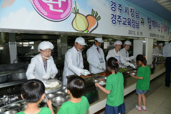 '경주시장·경주교육장', 금장초등학교 '급식현장 방문 배식활동'