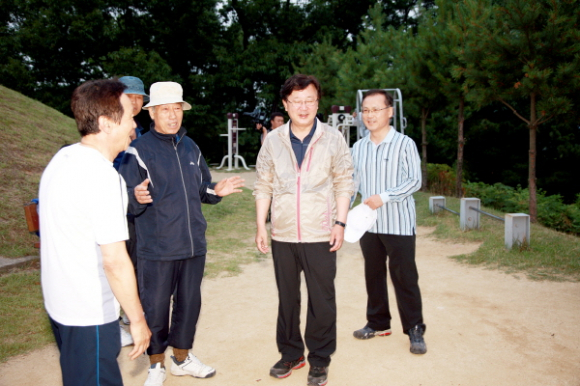 이른 아침인 새벽 5시에는 건강을 유지하기 위해 아침운동을 즐기는 많은 시민들이 태화봉 주변 오솔길을 찾았으며 권영세 안동시장은 자연스럽게 운동도 하며 시민들의 다양한 의견을 수렴했다.